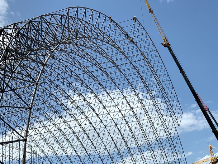 (2)网架加工前应对现场尺寸进行复测,确认无误后方可进行加工、安装;网架制作、运输、安装应遵守《空间网格结构技术规程》JGJ7-2010、《钢网架金昌螺栓球节点》JG/T 10-2009、《钢网架金昌螺栓球节点用高强度螺栓》 GB/T 16939-2016、《金昌钢结构金昌工程金昌施工规范》 GB50755-2012、《金昌钢结构金昌工程金昌施工质量验收标准》 GB50205-2020。